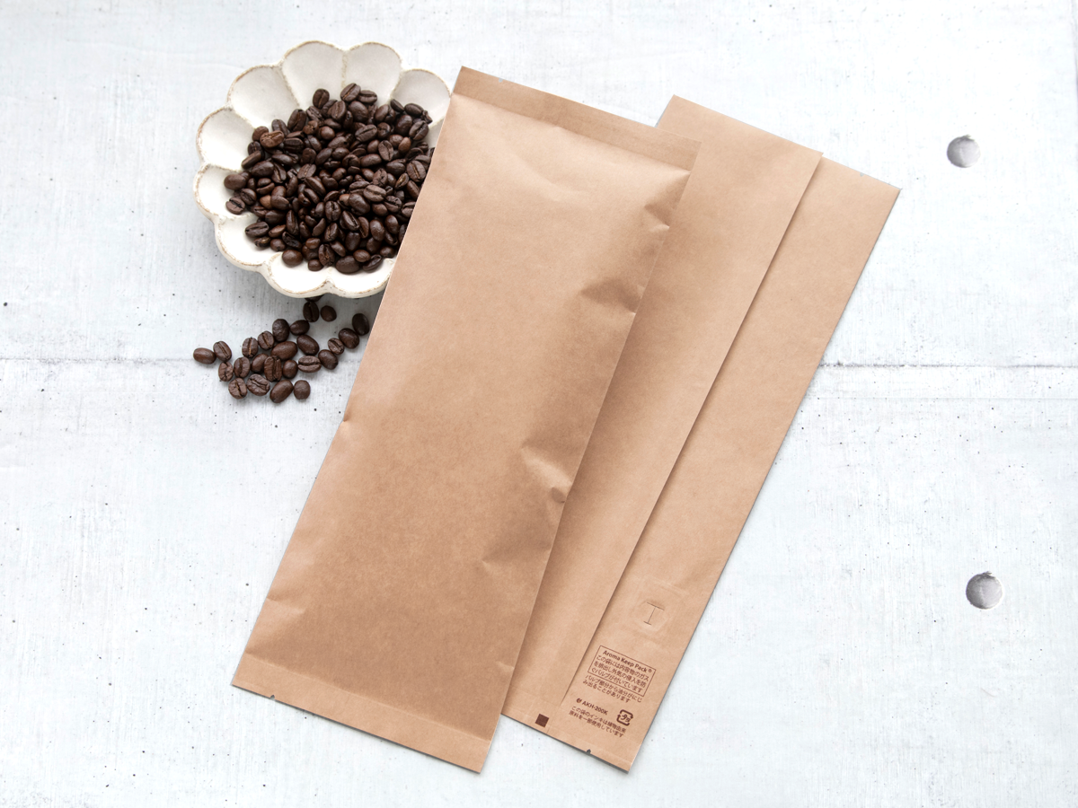 内容物から発生するガスを袋の外に出すバルブを取り付けたコーヒー専用袋です