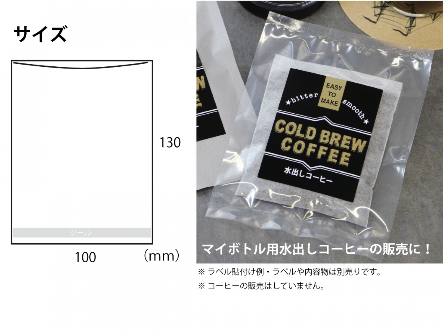 マイボトル用水出しコーヒー用空袋 がちょうど入る大きさの透明袋です(1個用)