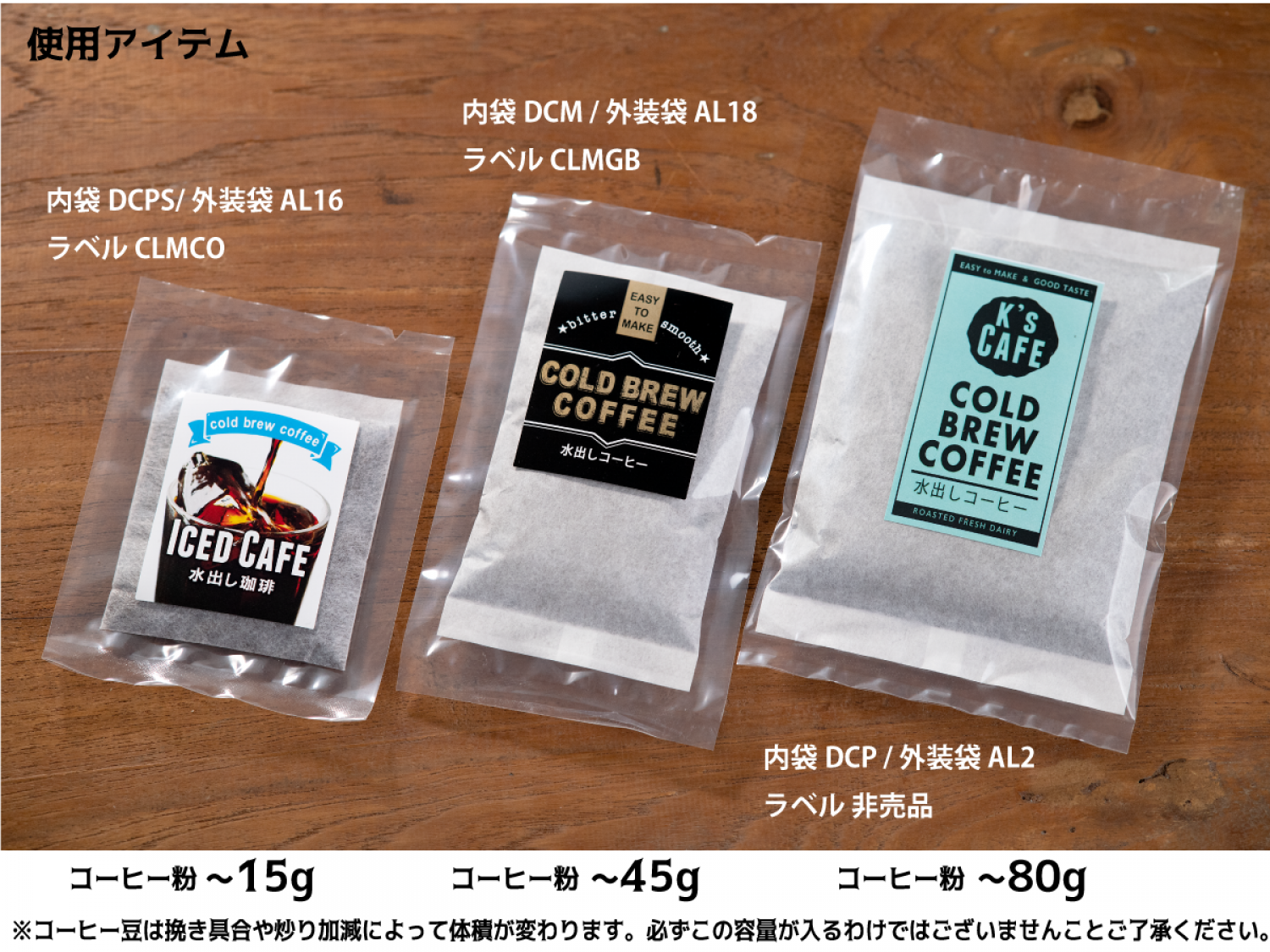 水出しコーヒー500ml用空袋 がちょうど入る大きさの透明袋です