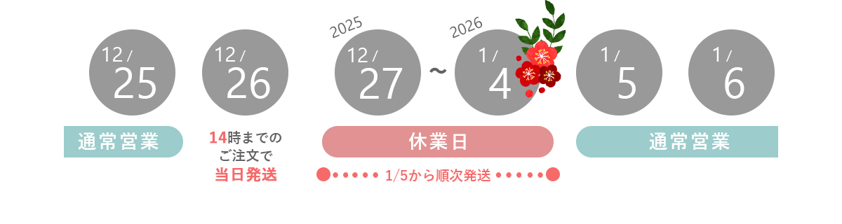休業日のご注文については翌営業日受付扱いとなります。